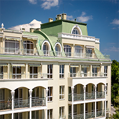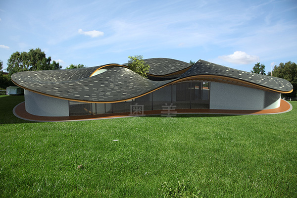 此為中東歐商務(wù)中心項目,此屋面系統(tǒng)采用的是新型建筑材料金屬復(fù)合瓦鋪設(shè)...