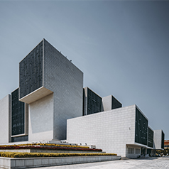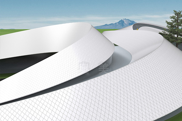 此為眉山展覽館項目,此屋面系統(tǒng)采用的是新型建筑材料金屬...